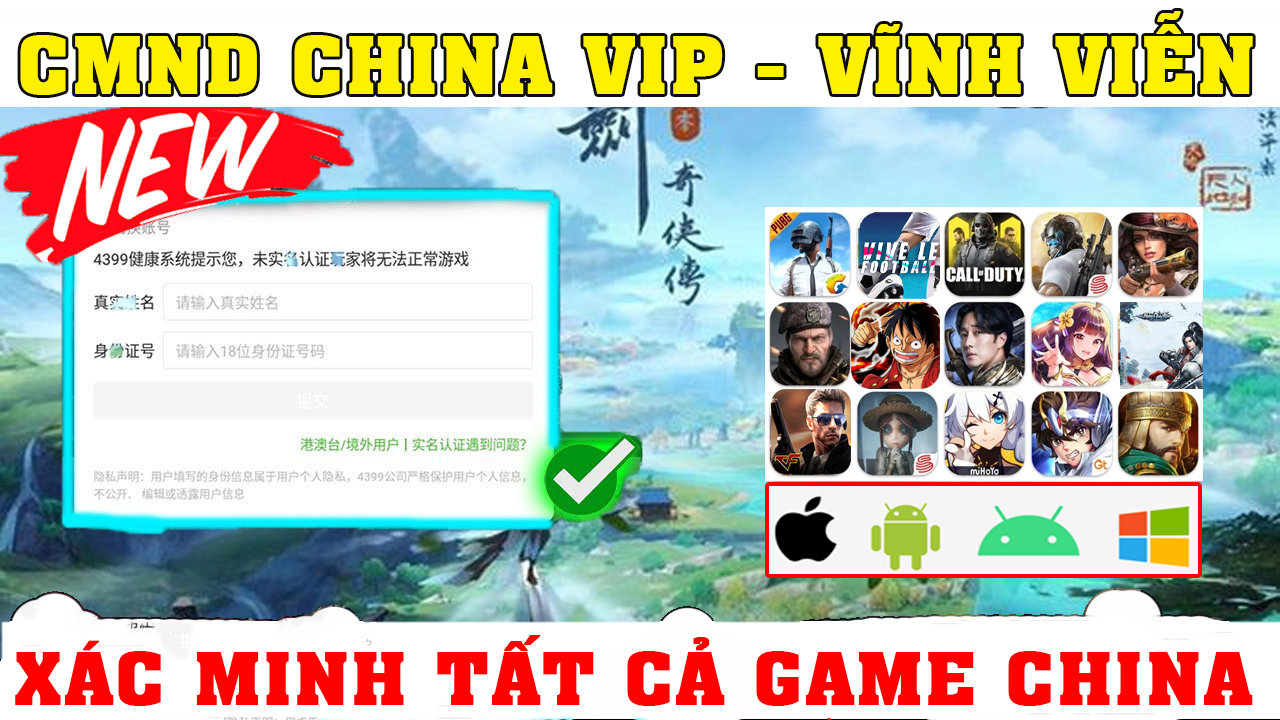 CMND China Xác Minh ALL Game (Sđt, Gmail, Icloud, Xiaomi, Tạo TK trực tiếp trên game)